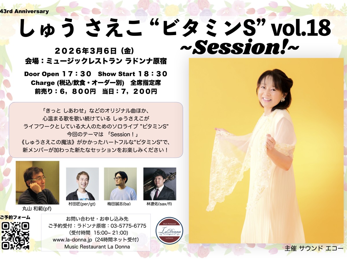 『しゅうさえこ ソロライブ”ビタミンS” vol.18 〜Session!〜』